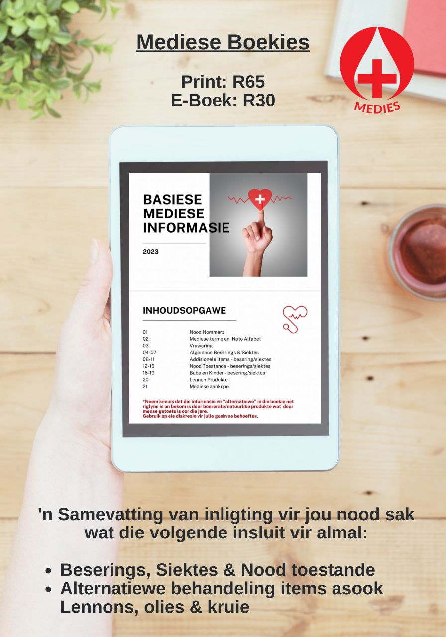 Mediese boekies en dit kan bestel word in PRINT of E-BOEK.
