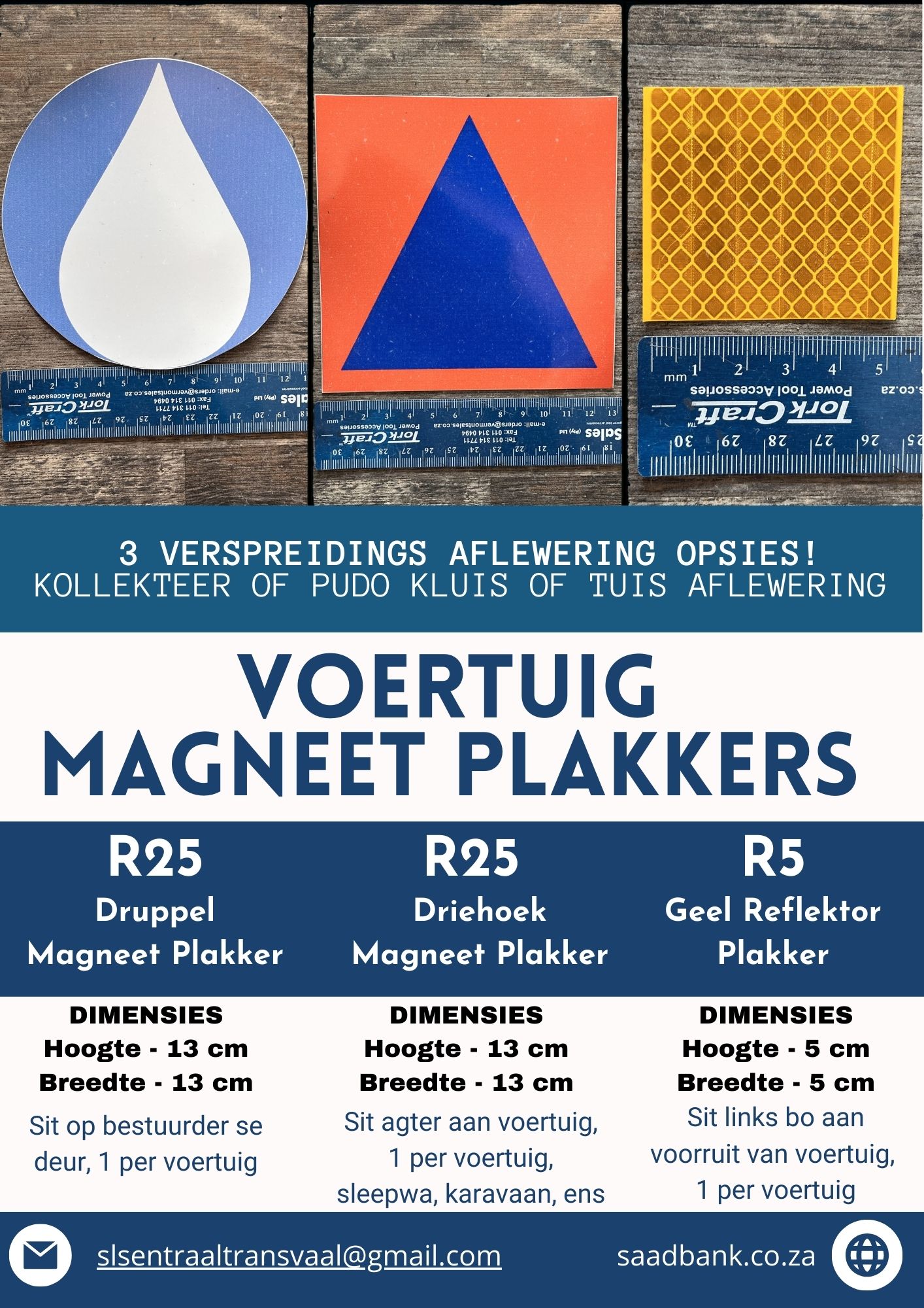 Verskeping opsies vir magneet plakkers – DUI AAN GEDURENDE BESTEL EN BETAAL: