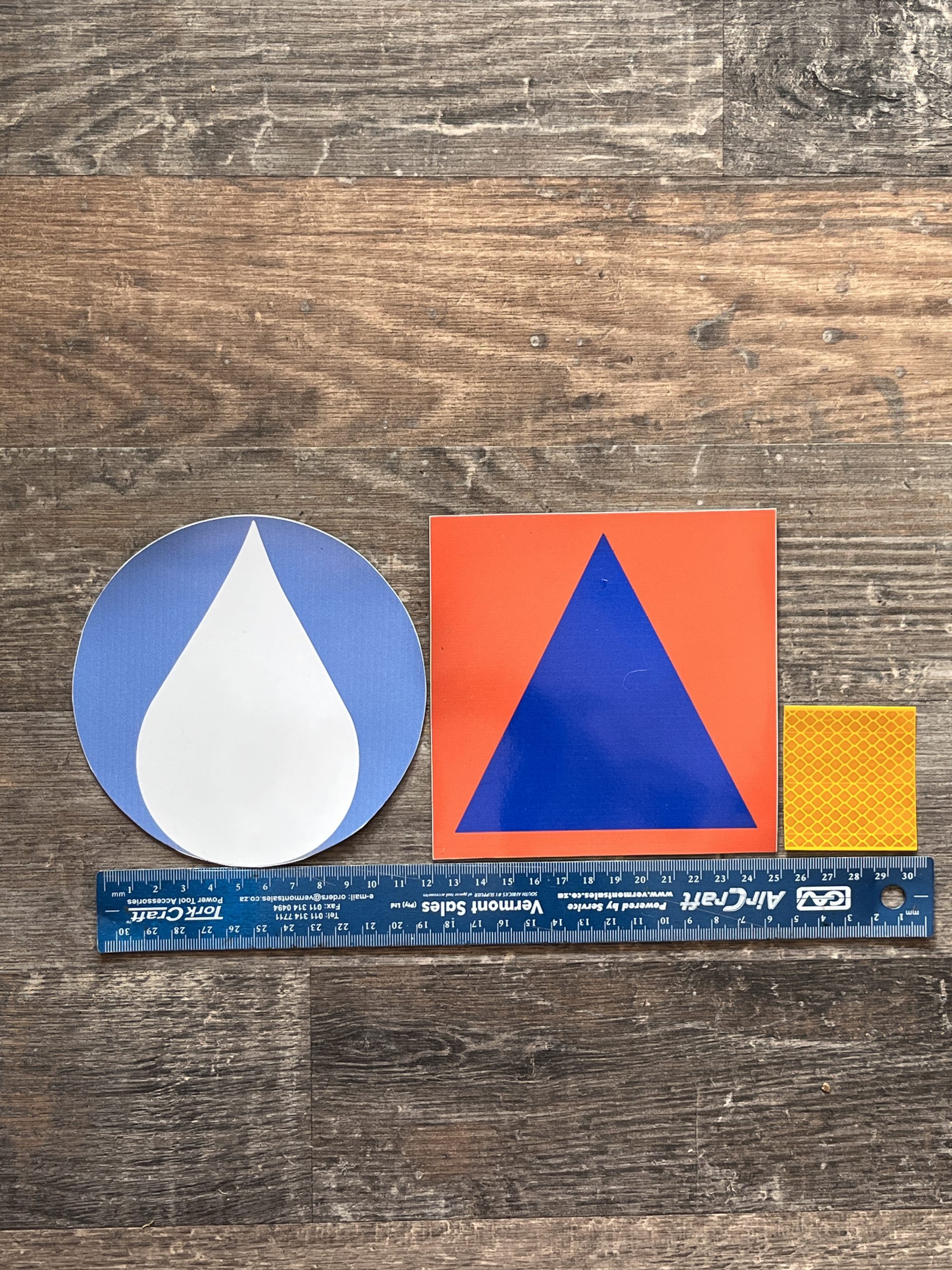- Geel reflektor plakker – sit links bo aan voorruit van voertuig, 1 per voertuig